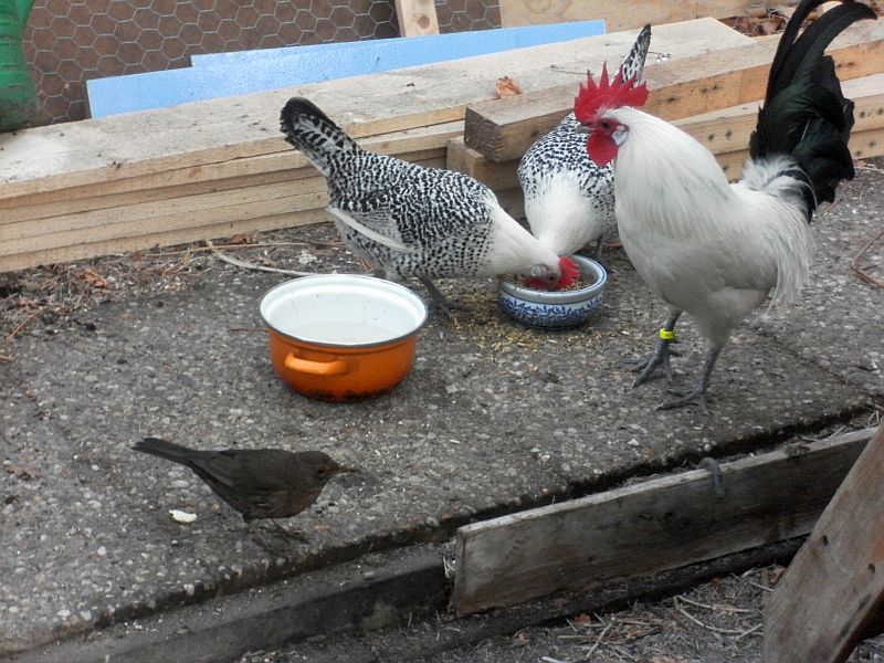 When I feed Arnold's chickens in the morning a blackbird joins for breakfast everyday.