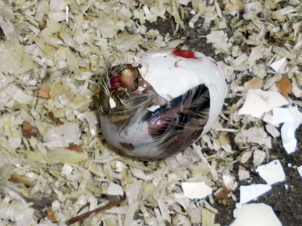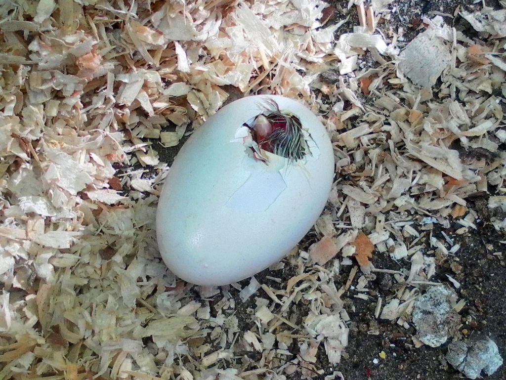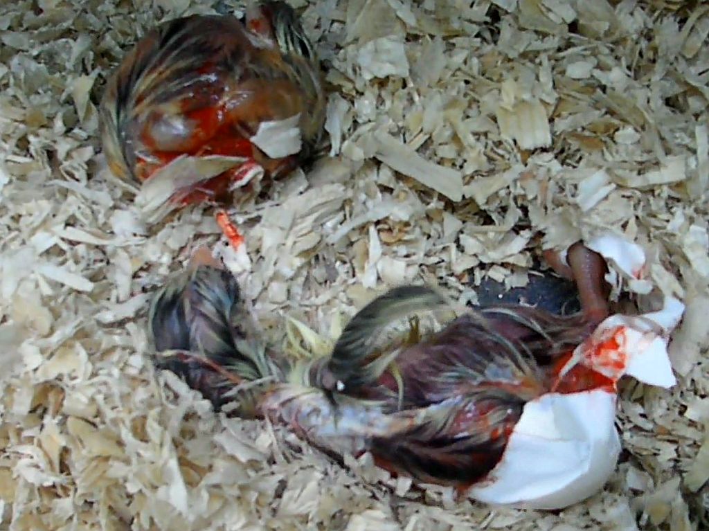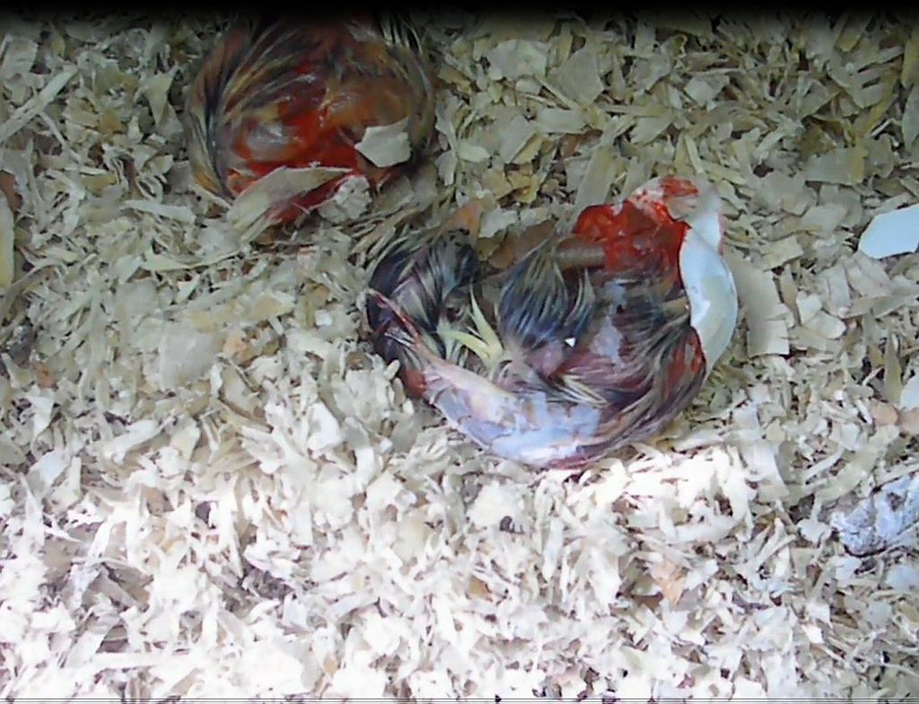 On May 12 the first chicks came out. For hours I had heard some squeeking and as it got fainter and fainter I decided to help them hatch by peeling off some eggshell when the mother had left her nest. |