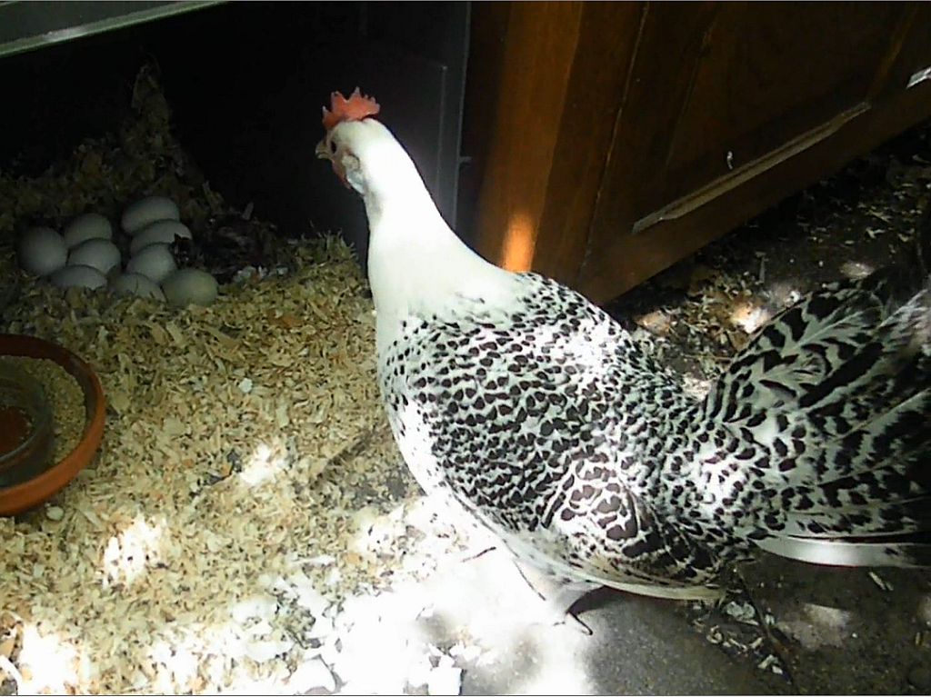During the day they spend the time outside with the other Silkies. |