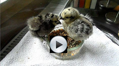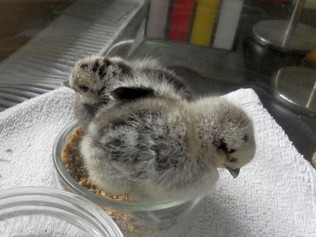 In the afternoon the same thing happened to a chick of the little brown one. After the same treatment she revovered as well and the two enjoyed each other's company and huddled together |
