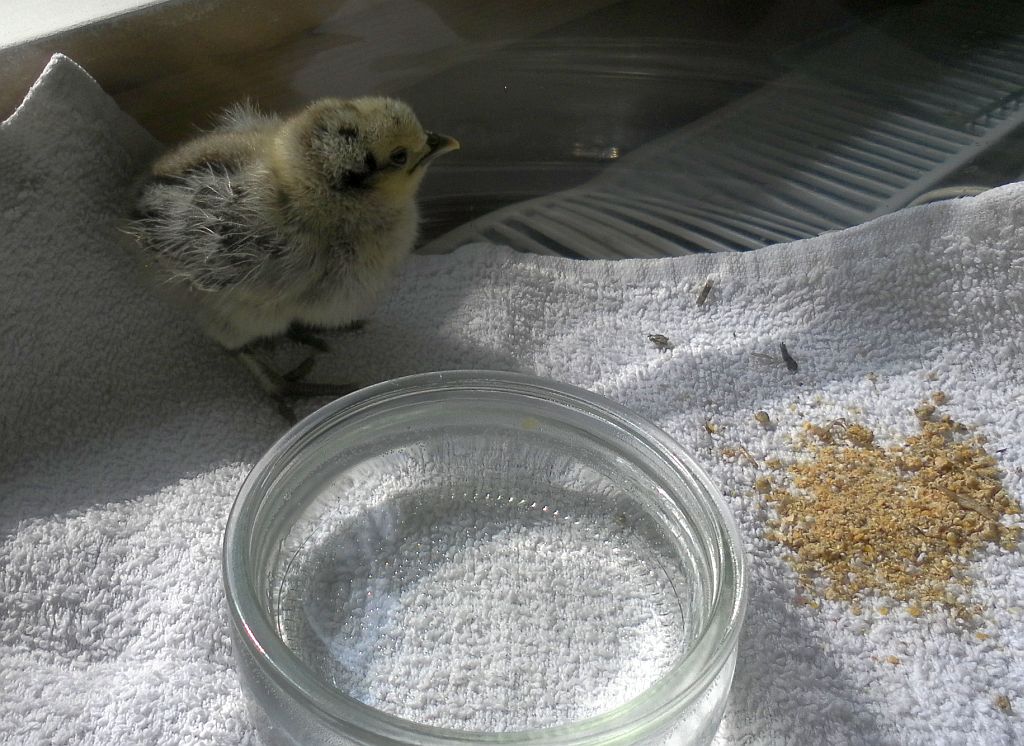 This morning I found one of the little chicks lying on the ground, half dead. |