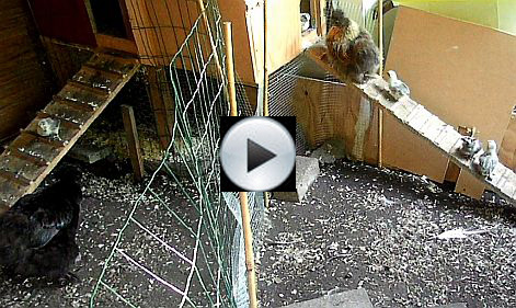 Every night the two mothers take their chicks upstairs at the same time. They go up, turn round once and the one that doesn't follow stays behind. In the beginning I guided the ones that stayed behind up the stairs but now they do it on their own. |