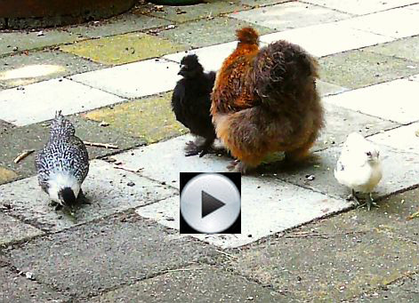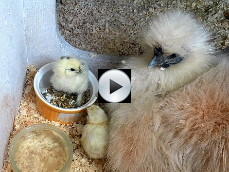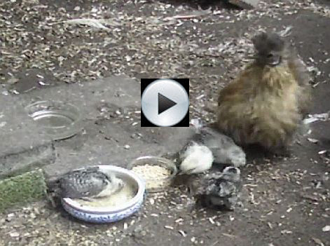 Little brown Silky and her 4 chicks, born on May 12th, now 3 weeks old |