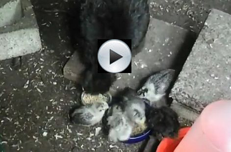 'Janini' and her 2 chicks, born on May 27thand 28th, now 5 and 4 days old |